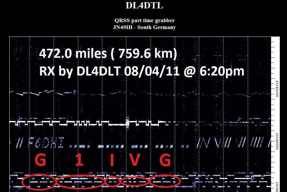 G1IVG's old 100mw signal received on DL4DLT's online QRSS grabber in South Germany.