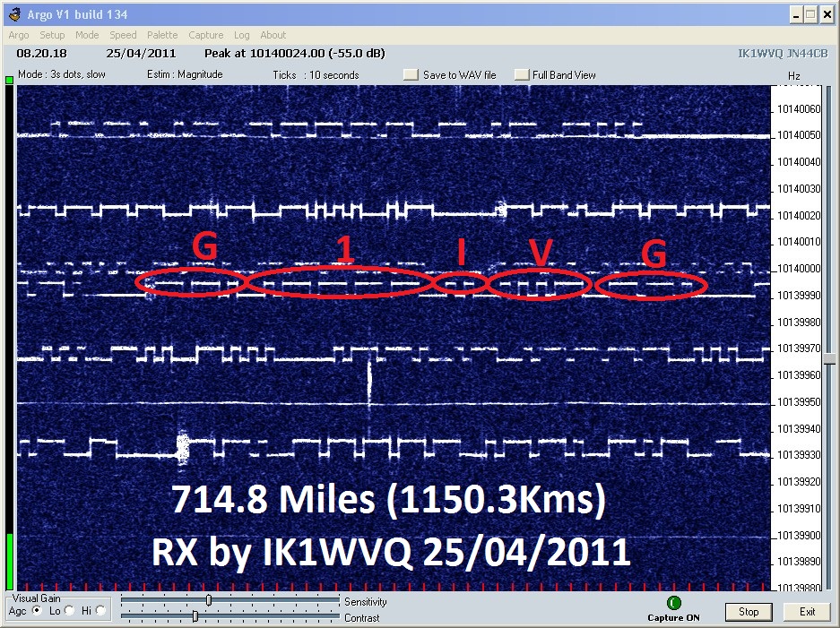 G1IVG's old 100mw signal received on IK1WVQ's online QRSS grabber in Italy.